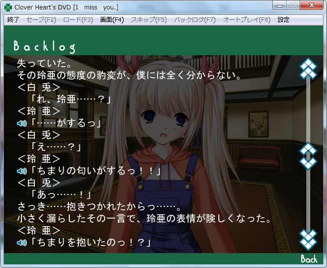 夜遅く帰ってきたときに、主人公に抱きついた後に怒ってこれを言われるんです。玲亜は寂しがっていたのもあって結構怒ります。この後はルートによって分岐しますけど、嫉妬するシーンは少なくなっていたかなぁと覚えています