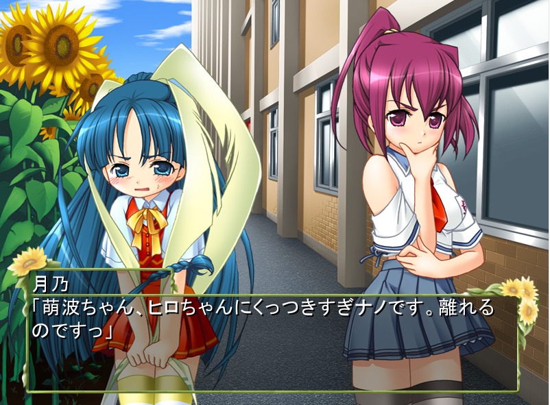 このゲームは結構ヒロインの嫉妬が見られます。主人公はモテモテというのもあり、結構女の子に好意を持たれています。そのうち左の月乃と右の小雪は幼馴染ということもあり幼いころから好意を持っています。