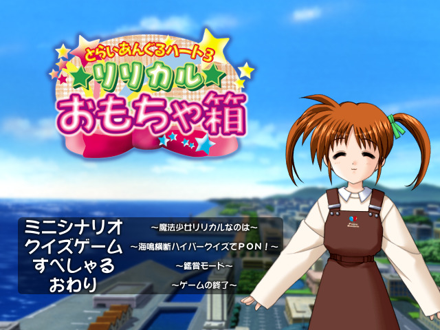 美由希・那美達「とらいあんぐるハート3」のキャラクターからプレイヤーキャラを選び、海鳴市で行われる「ハイパークイズ」に参加、学生・教師・漫画家・大家・魔術師に喫茶店経営者、剣道家に世界的歌手まで、海鳴市の住人たちが入り混じって行われるクイズ大会です!